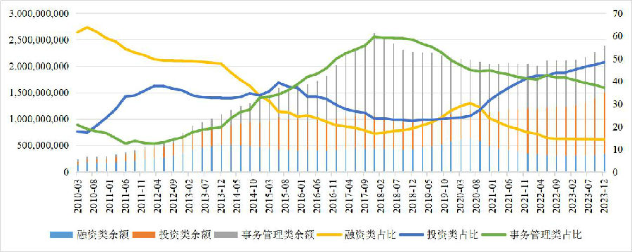 截至2023年末 ,融资类信托规模3.48万亿元,较2019年末压降已超2万亿元。