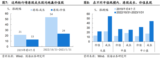 前两轮上涨中 ,港股成长优于价值,大中型股优于小型股