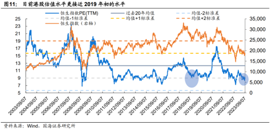 目前港股估值 、风险溢价更接近2019年初