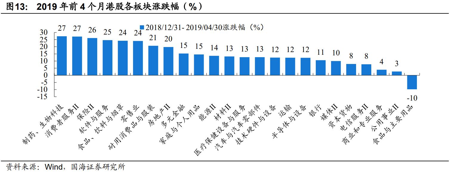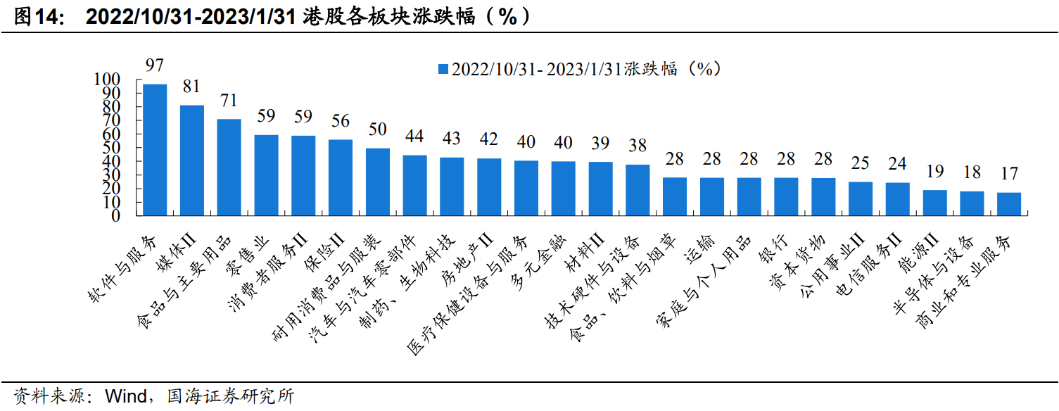 党崇钰指出 ,通过2019年前4个月(2018/12/31-2019/4/30)和2022年底至2023年年初(2022/10/31-2023/1/31)这两段港股反弹行情中,其中有两点类似之处。