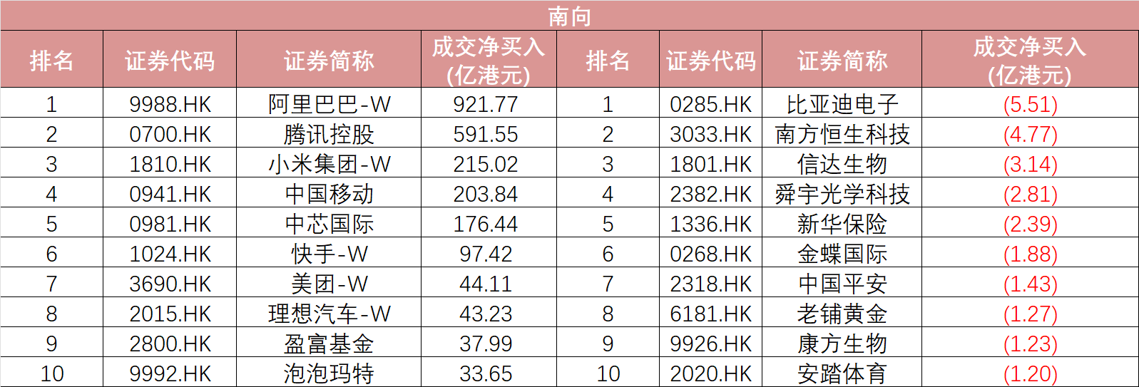 此外,小米集团-w、中国移动、和中芯国际(00981.hk)南向买入规模也均已超过百亿元。