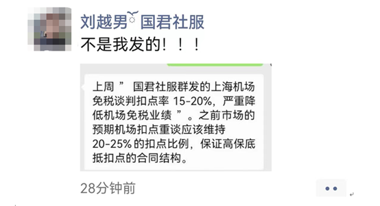 与此同时,国君社服分析师刘越男也紧急发朋友圈澄清“不是我发的 ”。