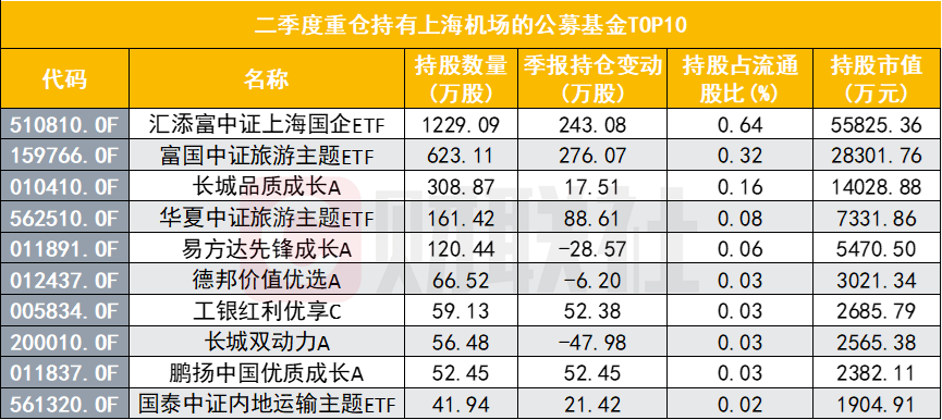 其中,汇添富中证上海国企etf是持仓大户 ,持股数量达到1229.09万股,占持股总量超三成,二季度加仓上海机场243.08万股,持仓市值为55825.36万元 。其次是富国中证旅游主题etf ,持有上海机场623.11万股。长城品质成长为持有该股最多的主动权益基金,持有308.87万股。