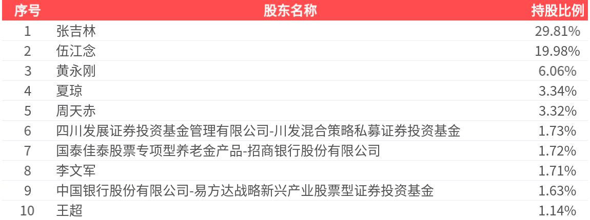 公司股东户数为2101户 ,前十大股东持股数量为8580.64万股,占总股本比例为70.45%,前十大股东持股情况如下: