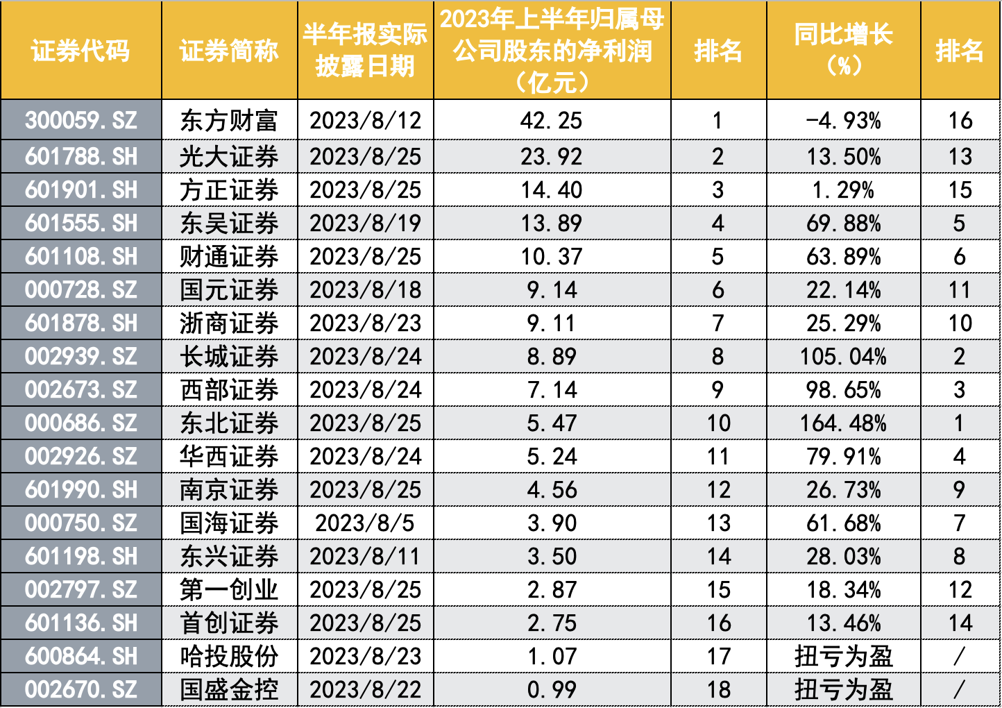 与此同时 ,今年上半年净利润不足3亿的券商分别是第一创业证券 、首创证券、哈投股份、国盛证券。第一创业上半年实现归母净利润为2.87亿元,首创证券、哈投股份和国盛金控分别为2.75亿元 、1.07亿元、0.99亿元 。