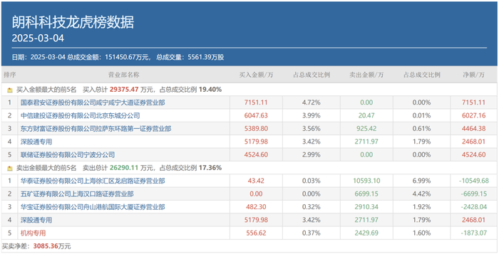 中信建投证券北京东城分公司和联储证券宁波分公司还“同框 ”出现在另一只risc-v概念股朗科科技(300042.sz)龙虎榜买方前五位中,买入金额分别为6047.63万元和4524.6万元 。国泰君安证券咸宁咸宁大道则以7151.11万元的买入额出现在该股买方榜首。