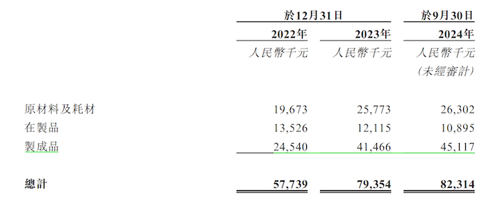 界面新闻注意到 ,大行科工的库存规模上升明显,2023年同比增加37.44%,截至2024年9月30日为8231.4万元 ,其中制成品的占比达55%。