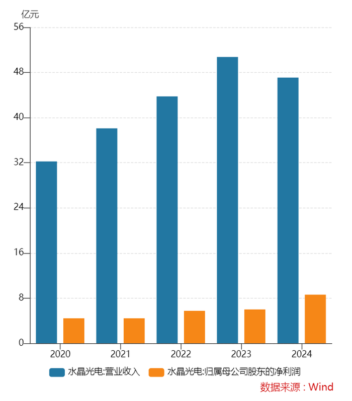 机构预测水晶光电接下去两年的业绩未能延续此前的高增速。国盛证券研报显示,预计水晶光电在2024/2025/2026年分别实现营业收入66/79/92亿元 ,同比增长30%/20%/16%,实现归母净利润11.0/12.6/15.2亿元,同比增长83%/15%/21%。