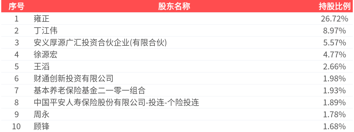 公司股东户数为7970户,前十大股东持股数量为5805.34万股,占总股本比例为57.96% ,前十大股东持股情况如下: