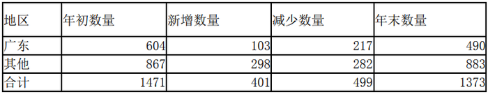 广东地区年初经销商数量604家,年末只有490家,减少了114家 。