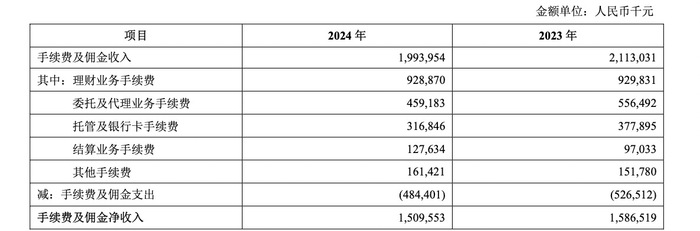 年报数据显示,2024年 ,青岛银行手续费及佣金净收入15.10亿元,比上年减少0.77亿元,下降 4.85% 。
