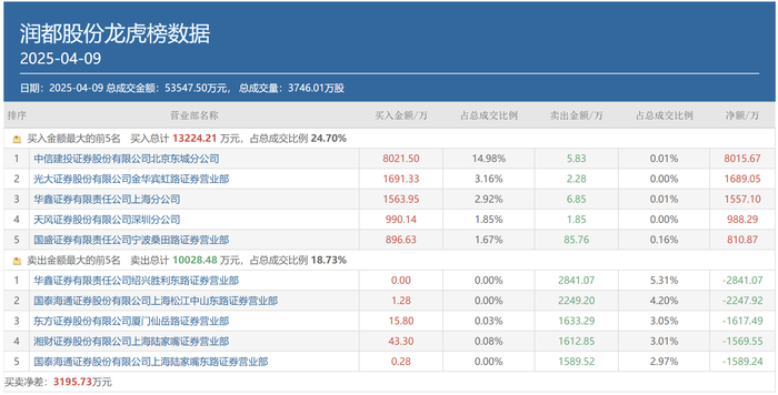 与多数游资积极博弈前一交易日已经率先反弹的个股不同的是,知名游资呼家楼4月9日出现在3天录得2个跌停板的润都股份(002923.sz)龙虎榜买方榜首 ,买入金额为8021.5万元,占该股当日总成交额的比例高达14.98%,并且润都股份当天披露的3日龙虎榜数据显示 ,上述席位累计买入金额为1.93亿元。